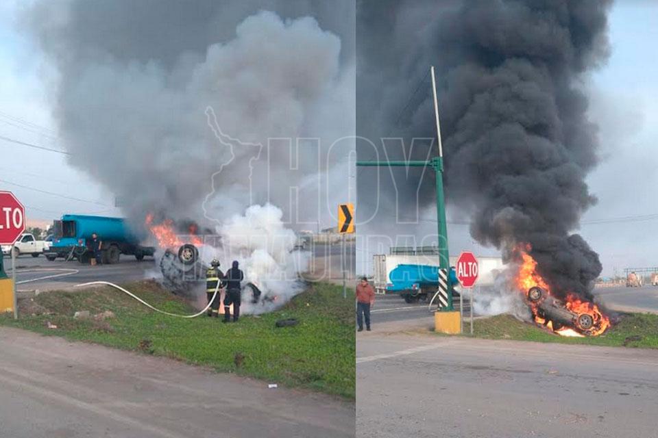 A punto de morir calcinado al volcar en Nuevo Laredo