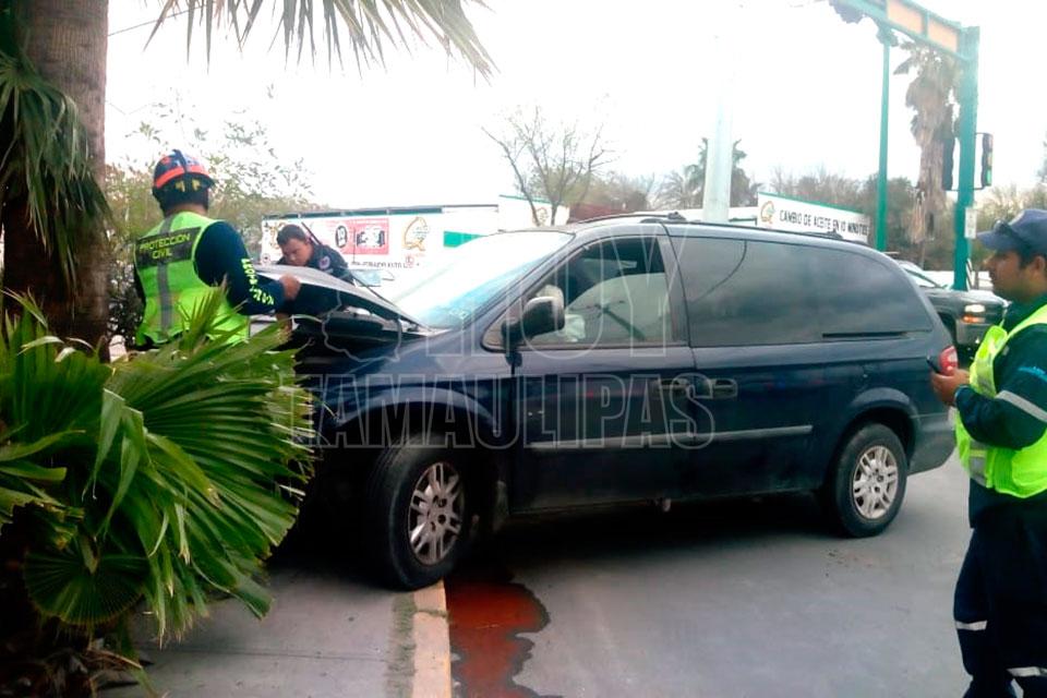Se estrella contra palmera luego de chocar por alcance en Nuevo Laredo