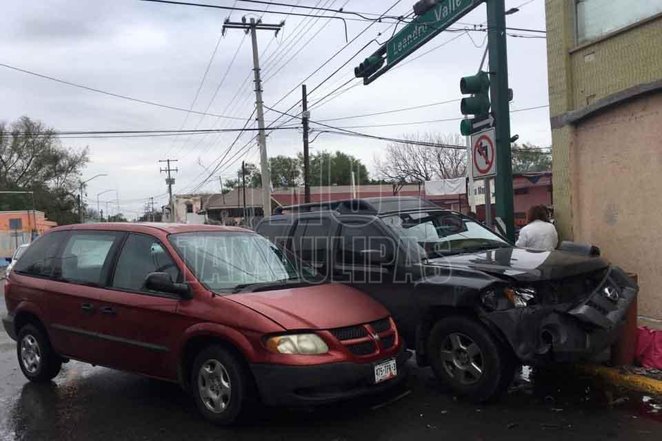Burla la luz roja y se impacta contra camioneta en Nuevo Laredo