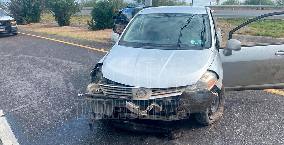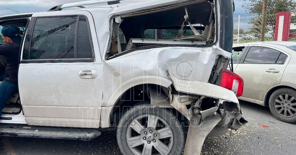 Conductora causa daños al dar vuelta prohibida en vía de Nuevo Laredo