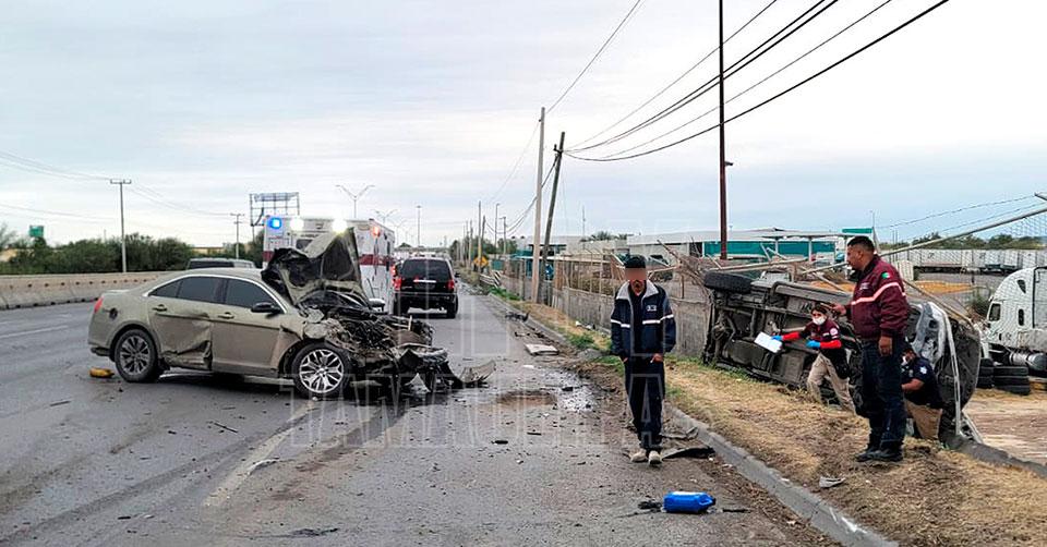Sobrevive a brutal choque con volcadura en Nuevo Laredo
