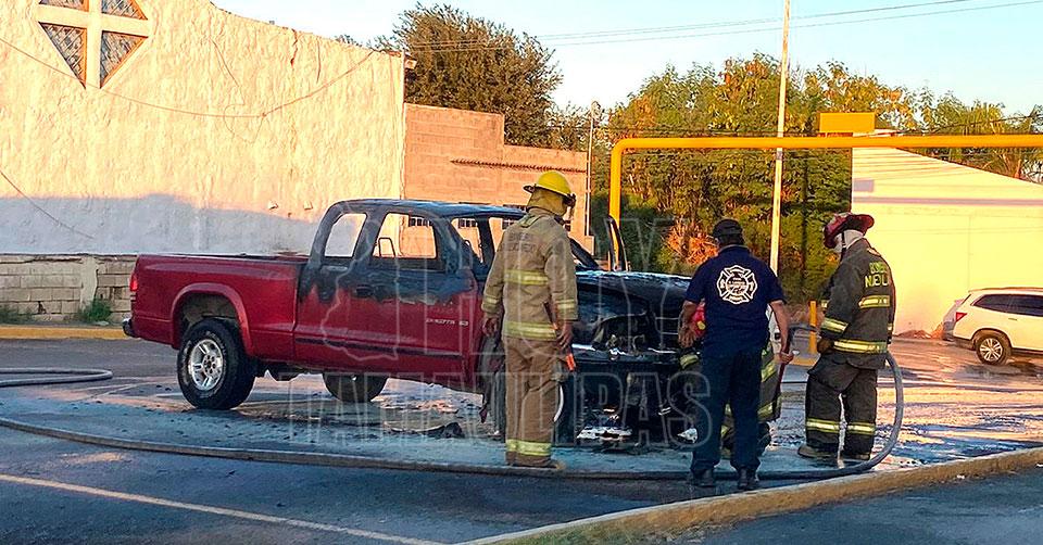 Incendio consume camioneta en estacionamiento de HEB en Nuevo Laredo