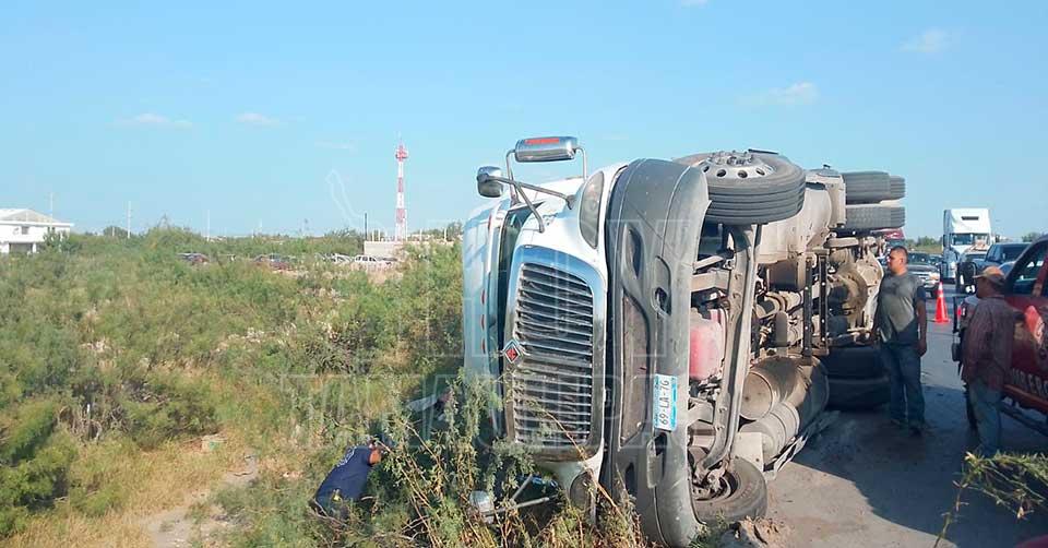 Vuelca tráiler por exceso de velocidad en Nuevo Laredo