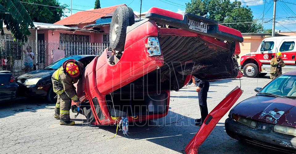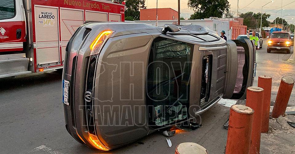 Mujer sobrevive a choque con volcadura en Nuevo Laredo