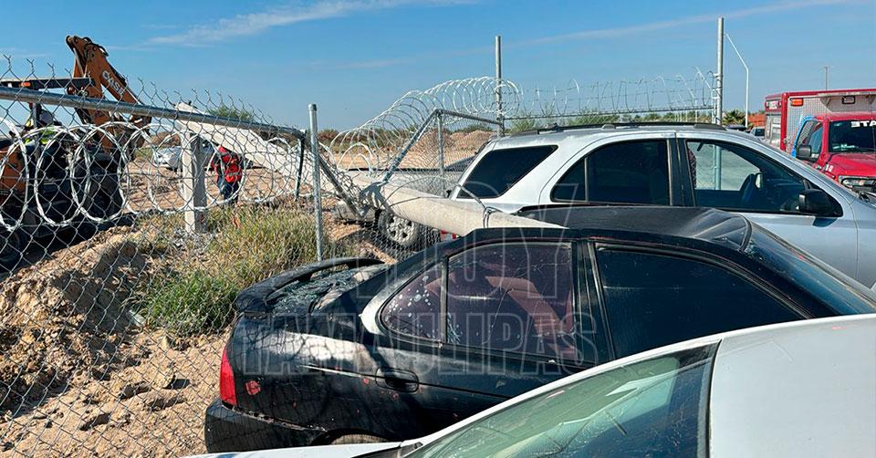 Poste de cemento aplasta un automóvil en Nuevo Laredo