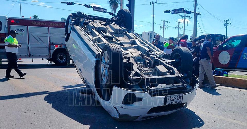 Choque con volcadura dejó sólo daños en Nuevo Laredo