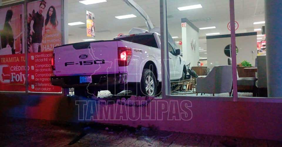 Se mete ebrio a mueblería con todo y camioneta en Nuevo Laredo
