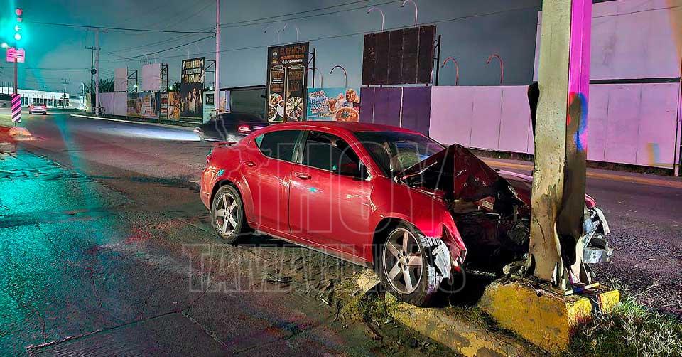 Derriba poste tras perder el control en bulevar de Nuevo Laredo