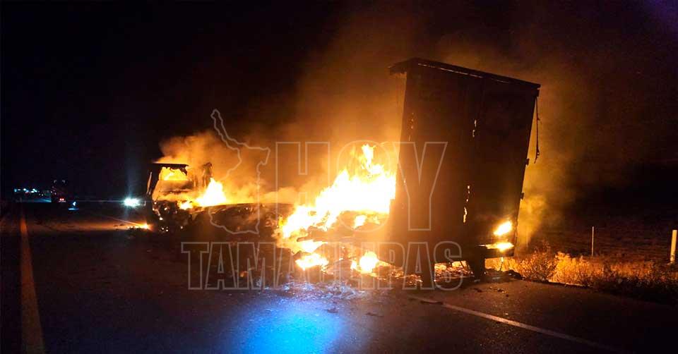 Operador de tráiler salva su vida tras incendio en Carretera a Monterrey