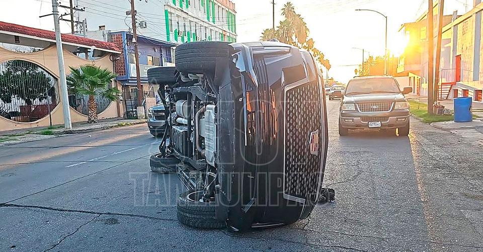 Choque con volcadura deja a un hombre lesionado en Nuevo Laredo