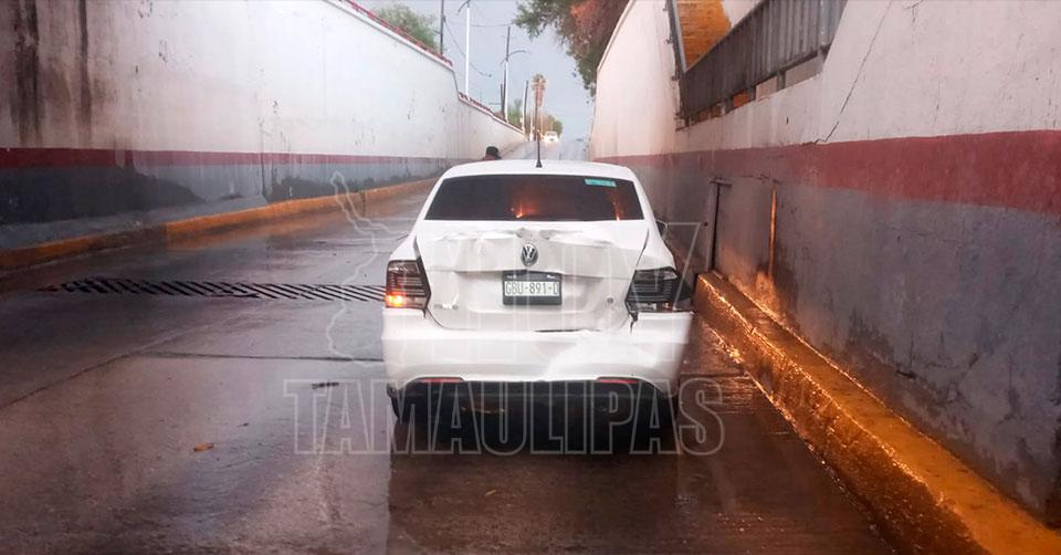 Se descontrola y choca contra muros de contención en Nuevo Laredo