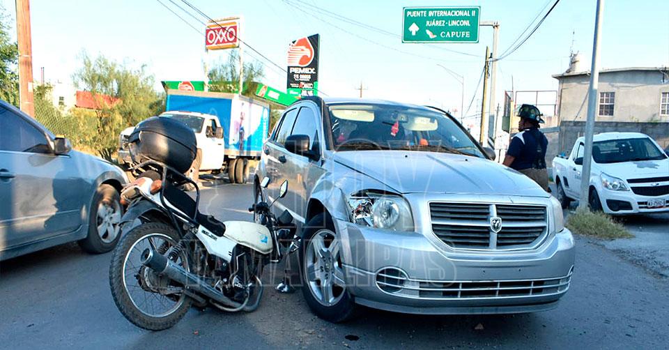 Motociclista choca contra automóvil y se salva en Nuevo Laredo