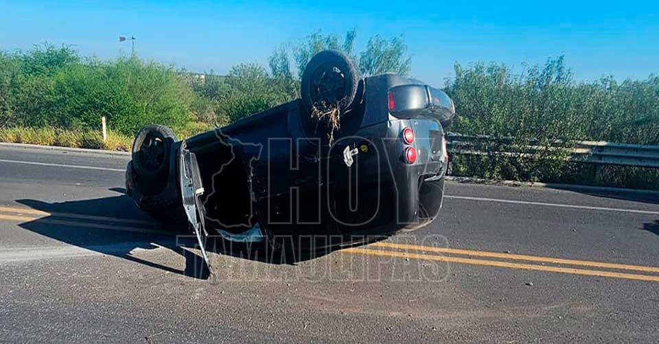 Mujer sale ilesa tras volcadura en Nuevo Laredo