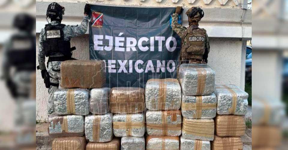 Aseguran 300 kilos de “mota”, armas y cartuchos en Nuevo Laredo