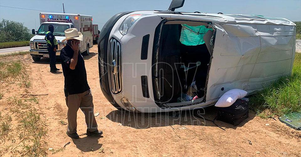 Paisanos se salvan de morir tras volcadura en Nuevo Laredo