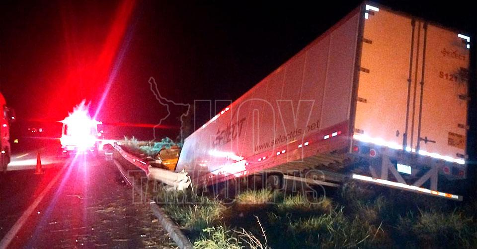 Tráiler choca contra automóvil en carretera de Nuevo Laredo