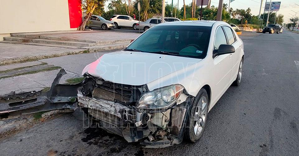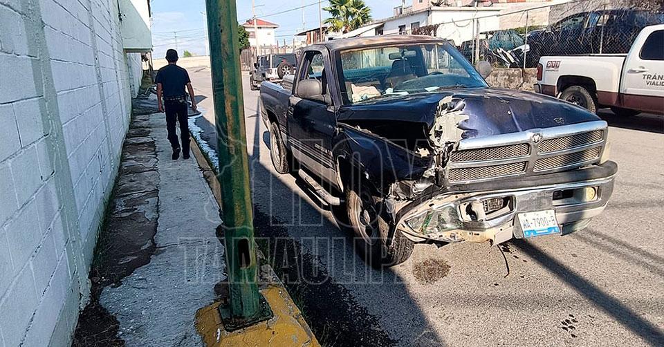Conductora choca y derriba poste de luz en Nuevo Laredo