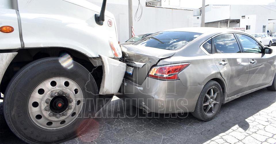 Choque por alcance entre tráiler y auto deja sólo daños en Nuevo Laredo