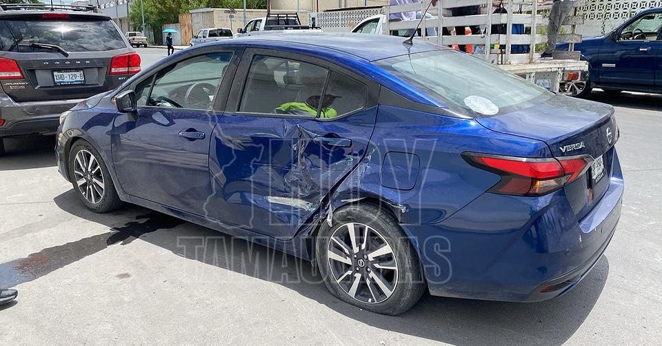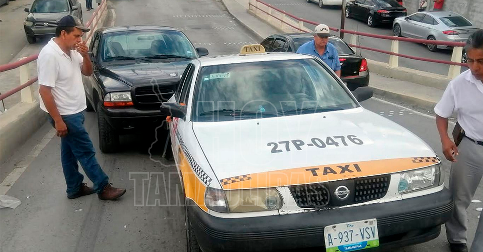 A taxista se le bota la reversa y choca en puente vehicular de Nuevo Laredo