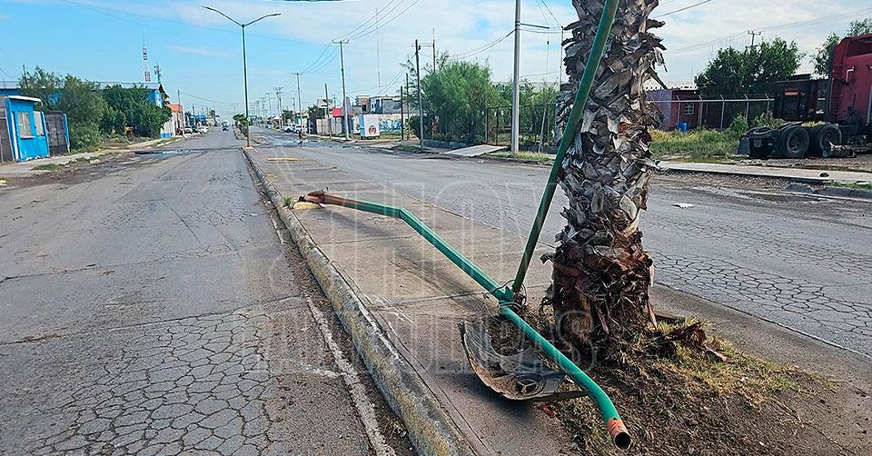Abandonan camioneta tras derribar poste de luz en Nuevo Laredo