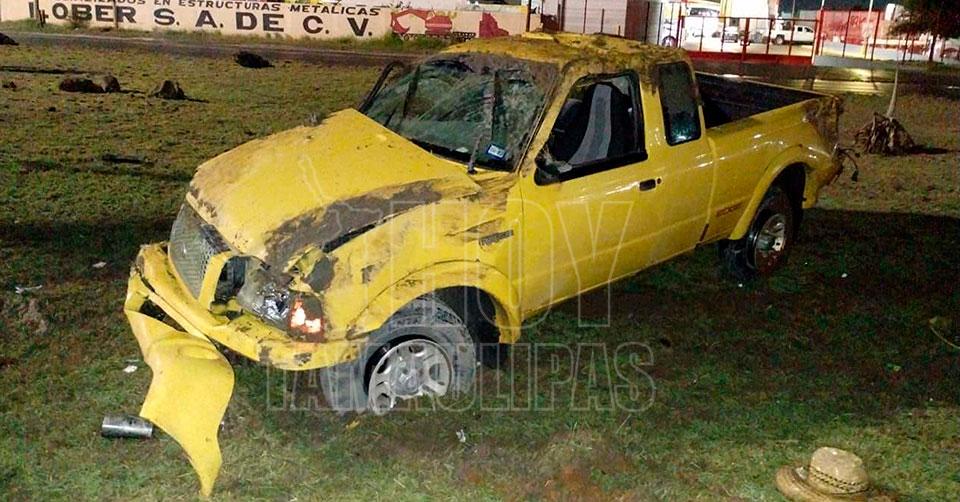 Dejan abandonada camioneta tras volcadura en Nuevo Laredo