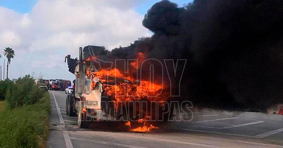 Se incendia tractocamión cerca de la antigua garita en Nuevo Laredo