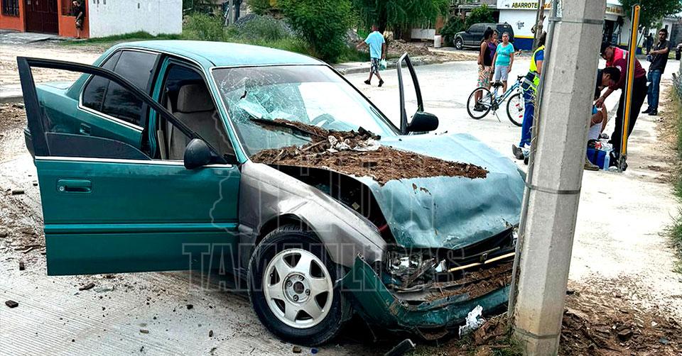 Conductor abandona vehículo tras chocar poste en Nuevo Laredo