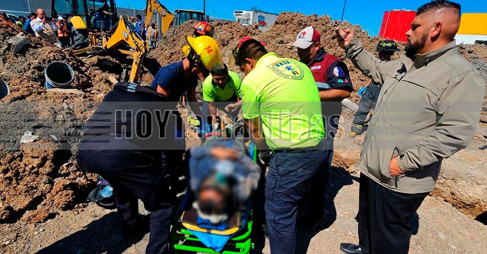 Derrumbe de tierra en Mi Tienda del Ahorro en Nuevo Laredo deja dos hombres semienterrados
