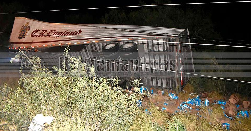 Trailero sale herido tras accidente carretero en Nuevo Laredo