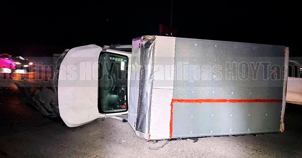 Chofer provoca choque con volcadura frente al Aeropuerto de Nuevo Laredo