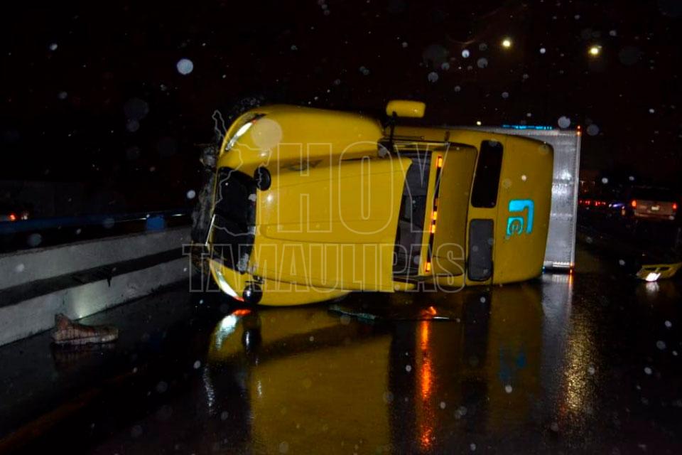 Choque con volcadura deja daños materiales en Nuevo Laredo