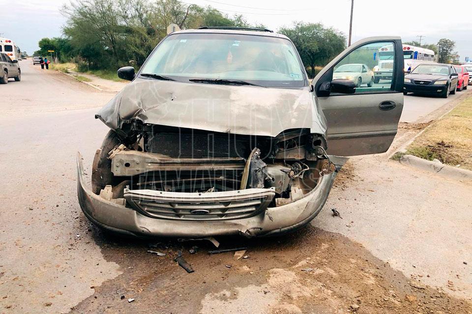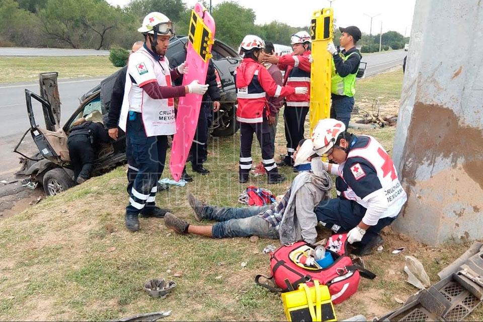 Dos lesionados al chocar camioneta contra poste en Nuevo Laredo