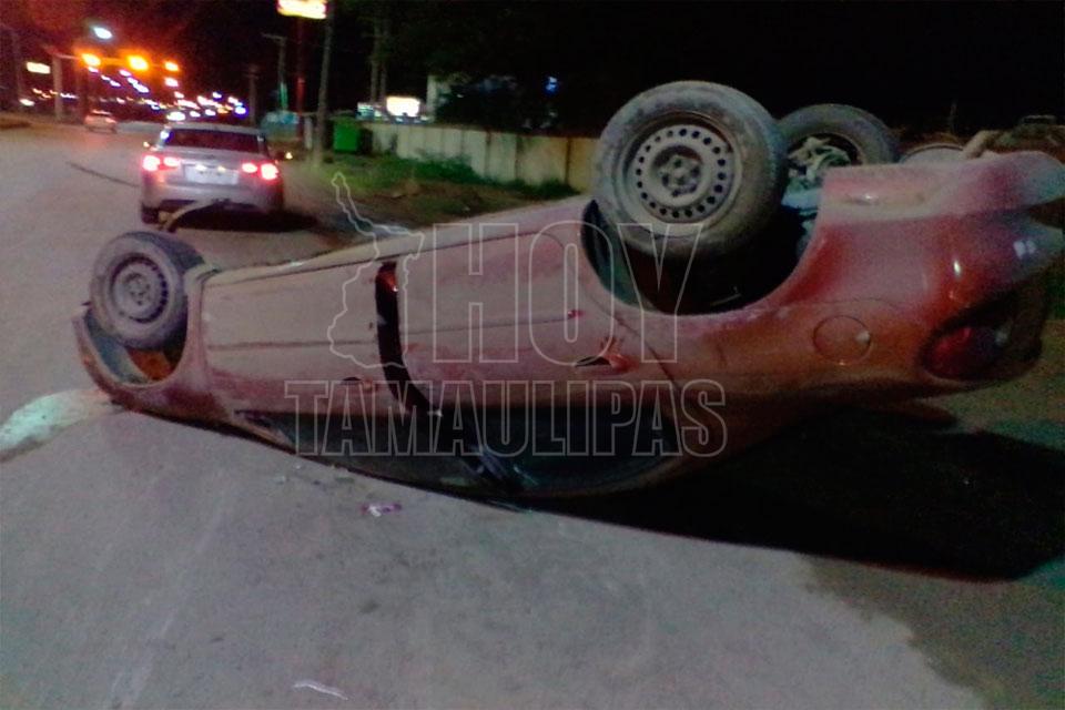 Joven vuelca y sale con heridas menores en Nuevo Laredo