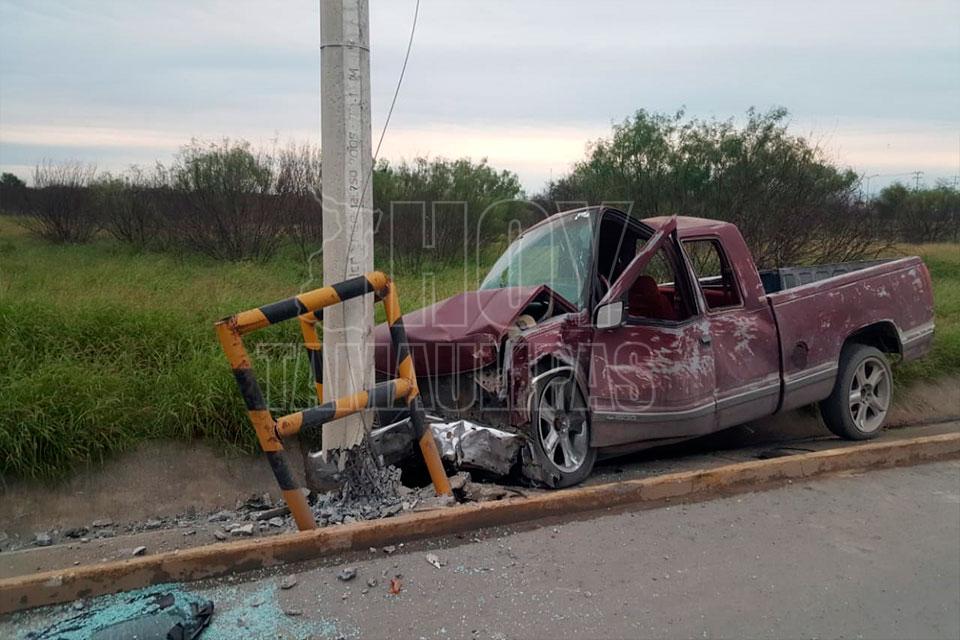Choca contra poste y abandona su vehículo en Nuevo Laredo