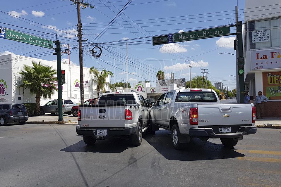 Choque en el centro de Nuevo Laredo deja daños materiales