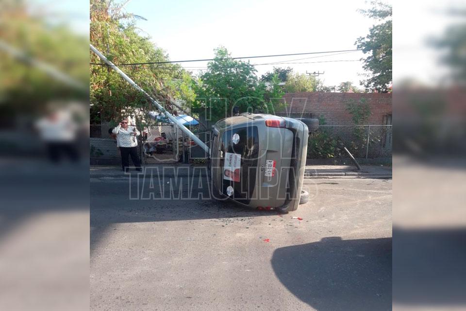 Choque con volcadura deja daños materiales en Nuevo Laredo