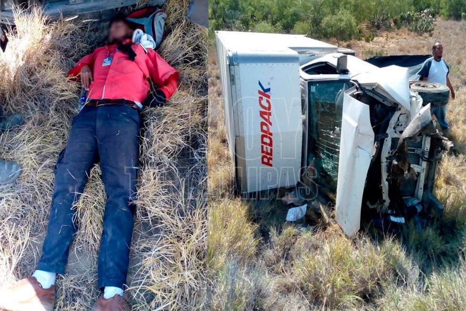 Mujer se salva de morir en volcadura cerca de Nuevo Laredo