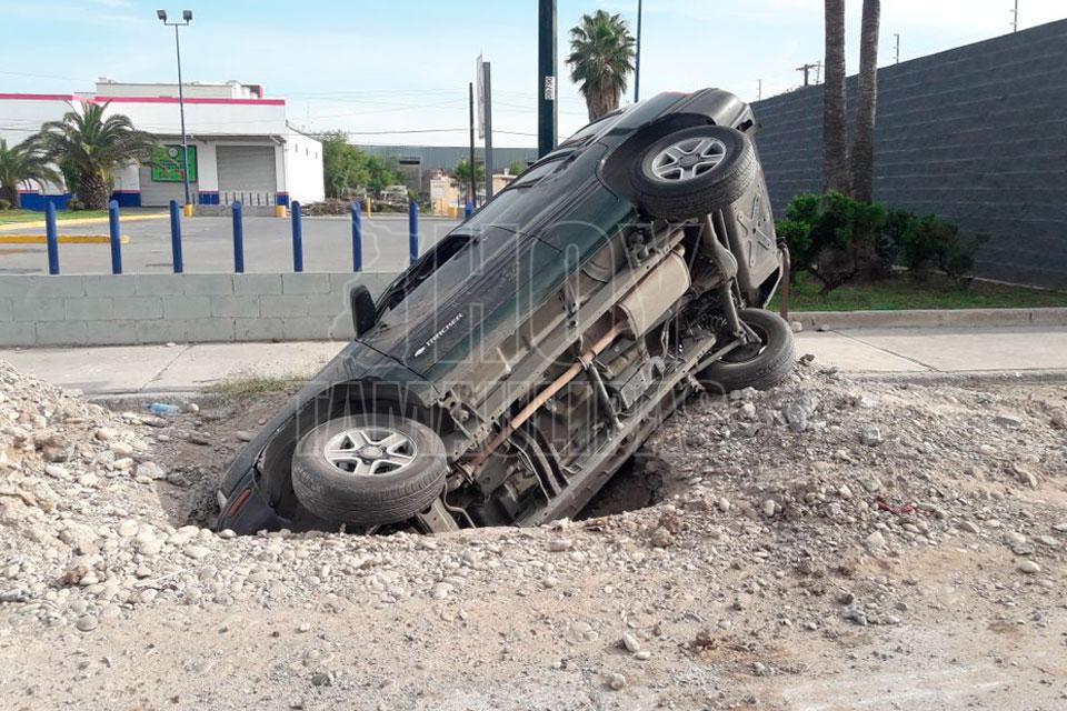 Se mete a zanja con todo y camioneta en Nuevo Laredo