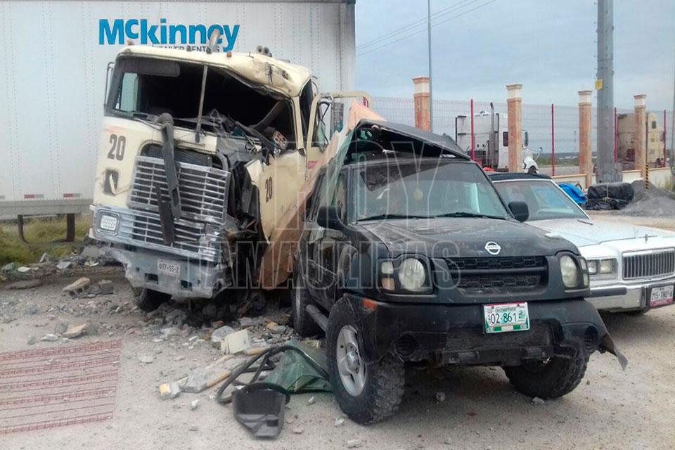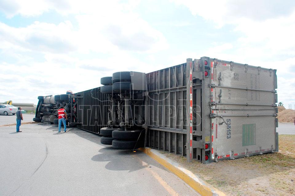 Encontronazo entre tráiler y camioneta los hace volcar en Nuevo Laredo