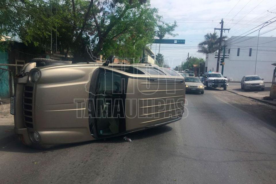 Vuelca mujer en su camioneta y sale ilesa en Nuevo Laredo
