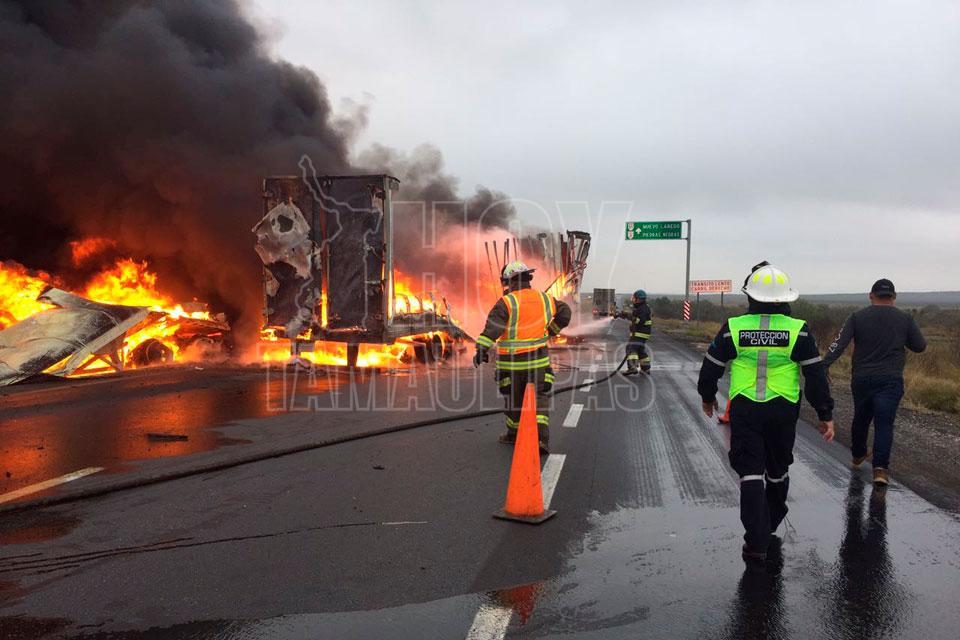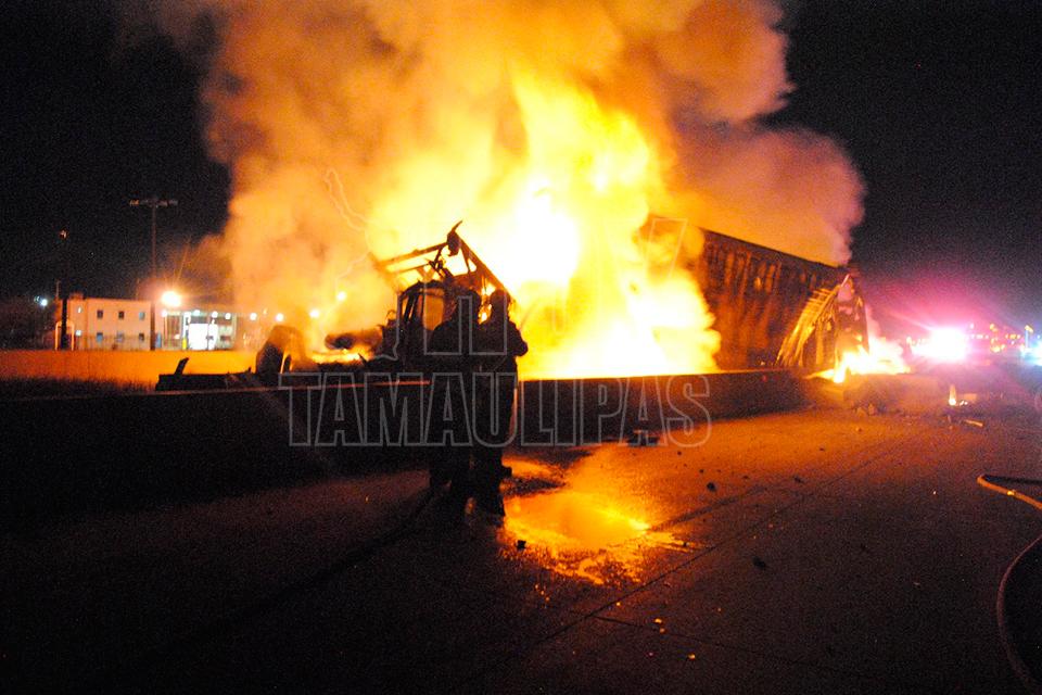 Se incendia tractocamión al chocar en Nuevo Laredo