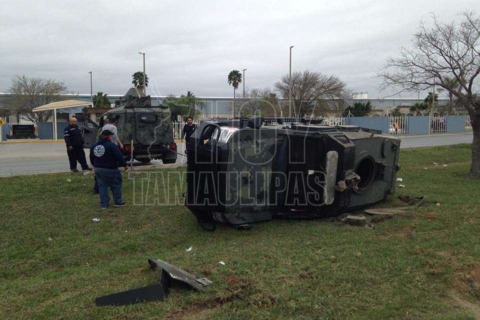 Vuelca vehículo de soldados en Nuevo Laredo; 4 heridos