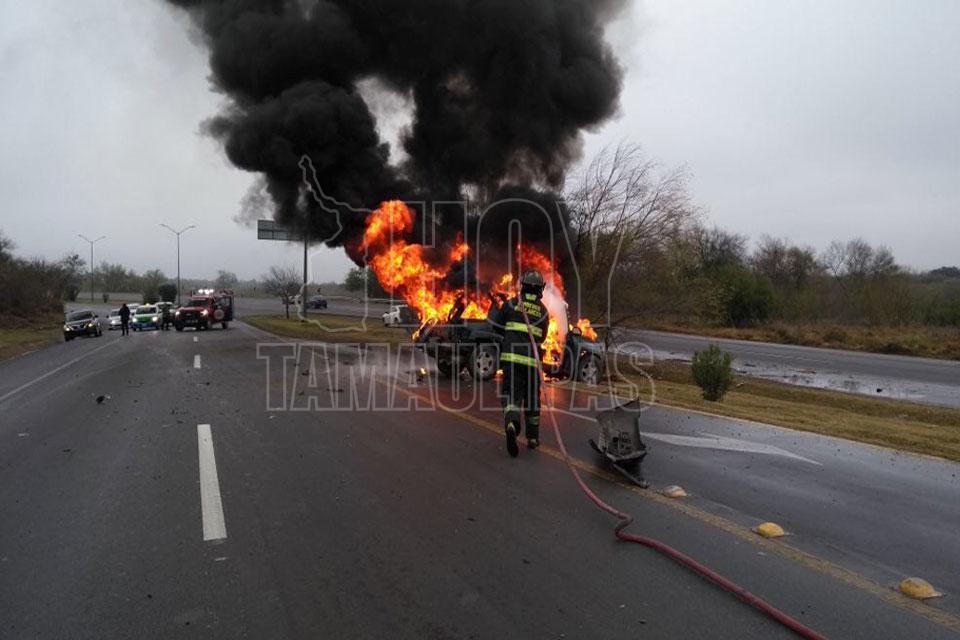 Se salvan de morir quemados al chocar e incendiarse camioneta en Nuevo Laredo