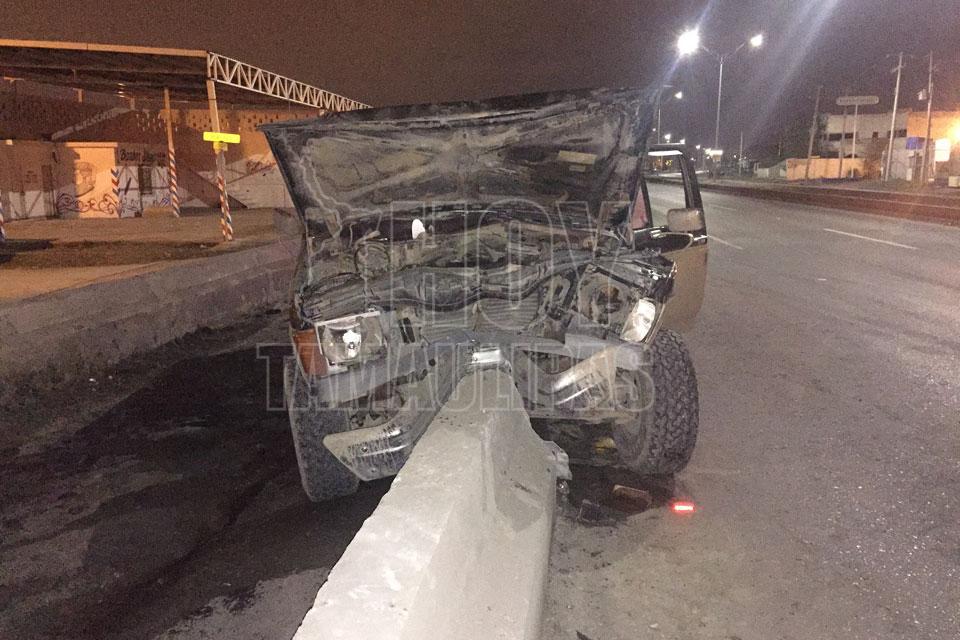 Ebrio choca en Nuevo Laredo contra muro de contención