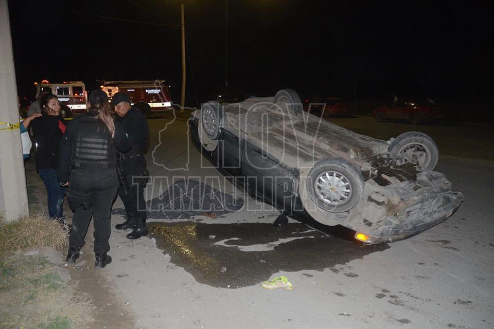 Muere hombre al volcar automóvil en Nuevo Laredo, un lesionado