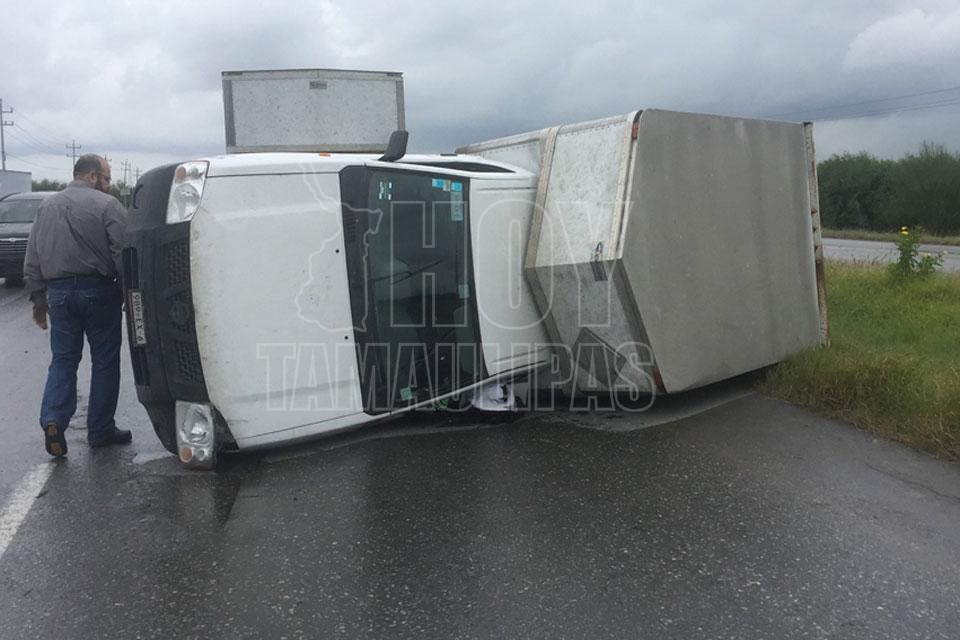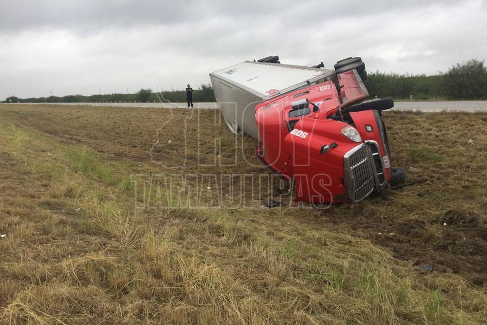 Por poco se mata al volcar su unidad en Nuevo Laredo