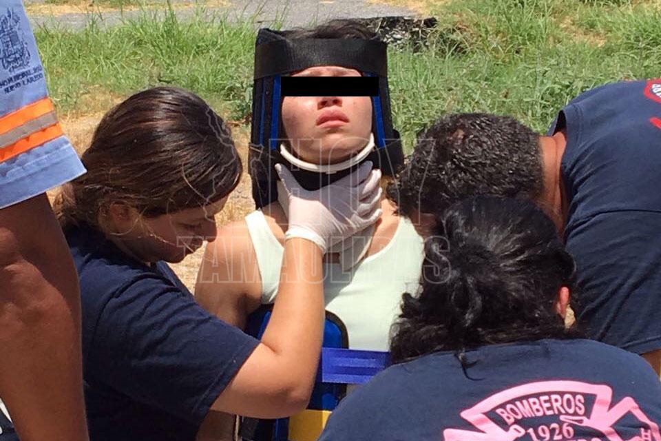 Adolescente se lesiona al volcar su automóvil en Nuevo Laredo