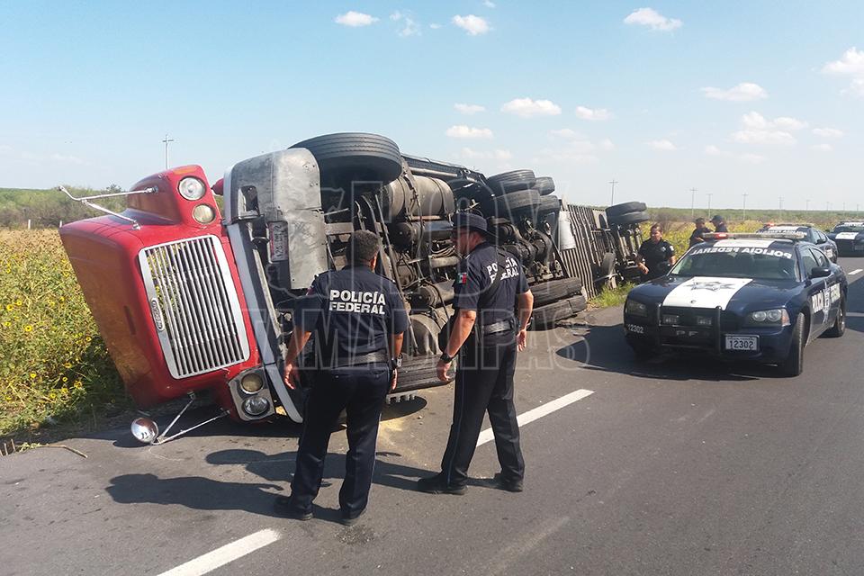 Volcadura en Nuevo Laredo deja como saldo daños materiales