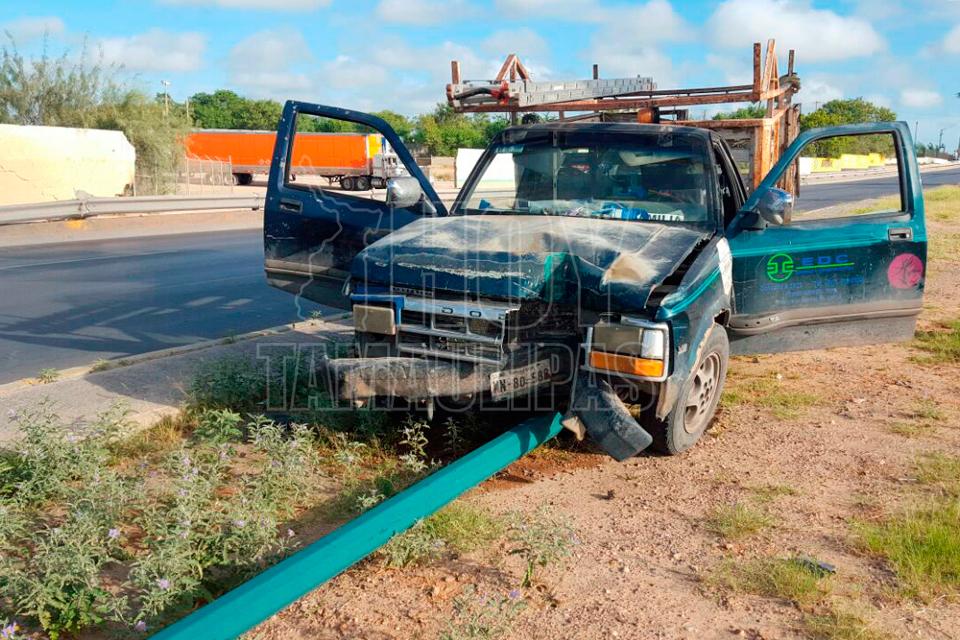Conductor choca su camioneta contra un poste en Nuevo Laredo