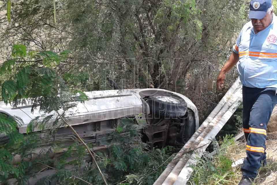 Familia se vuelca y cae a barranco en Nuevo Laredo